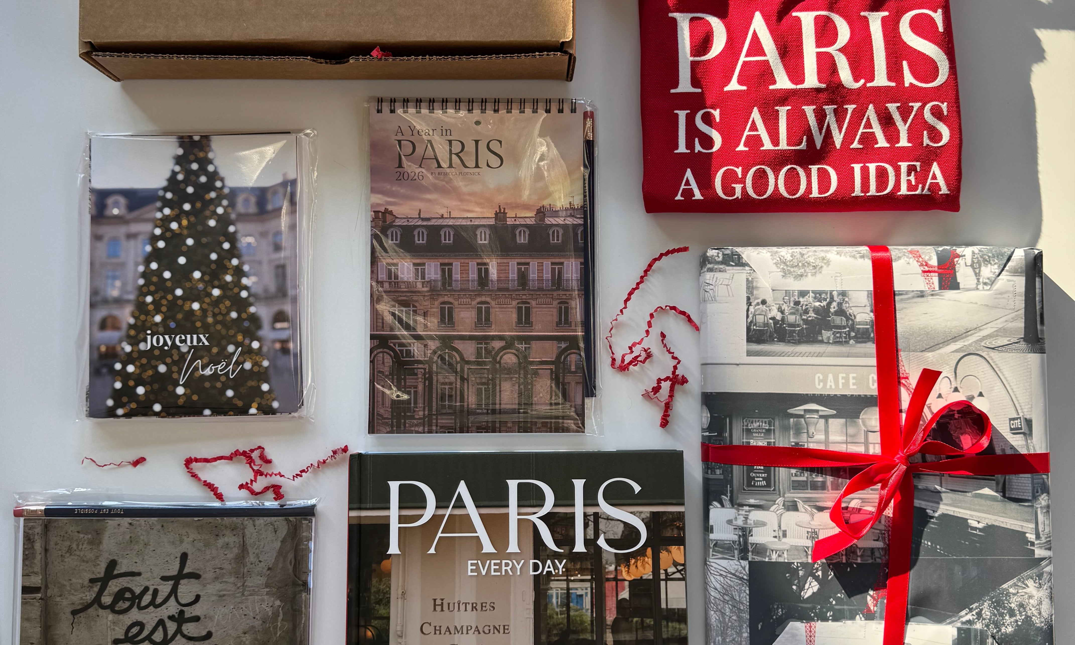 Bring Paris home for the holidays. Discover limited edition Paris Holiday Gift Boxes, curated with signed books, Paris calendars, totes, notecards, and more for the Francophile.