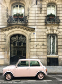 A rare pink car spotted on the streets of Paris. Pink is my favorite color so this caught my eye. The pink car is owned by a teacher at a nearby school and is often seen parked outside.