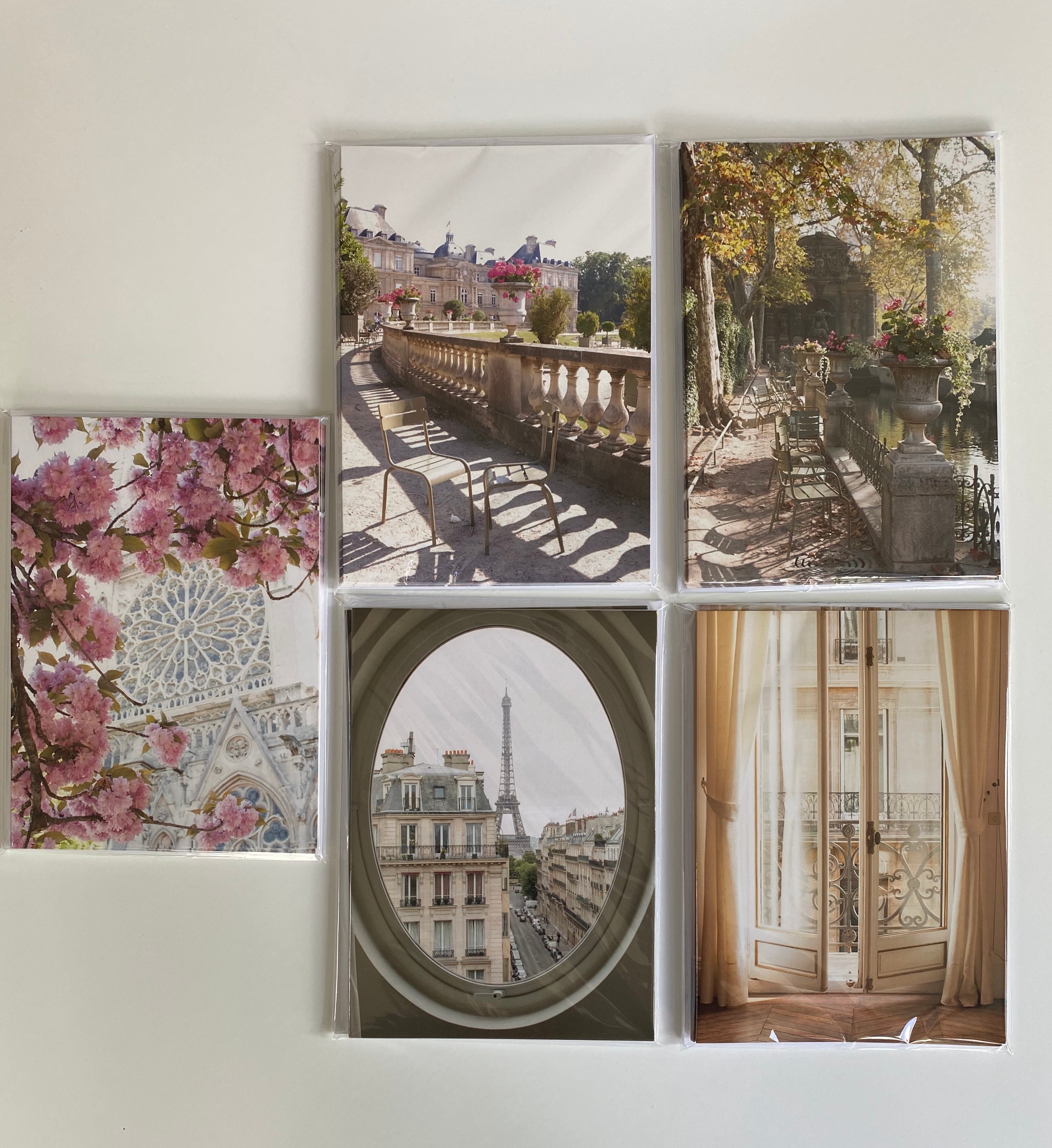 Say Hello with this Set of 5 notecards A7 measuring 5 x 7 French Notecard of my best selling prints. Includes 5 envelopes with the order. Select your set of notecards. Each set of 5 sells for $20.