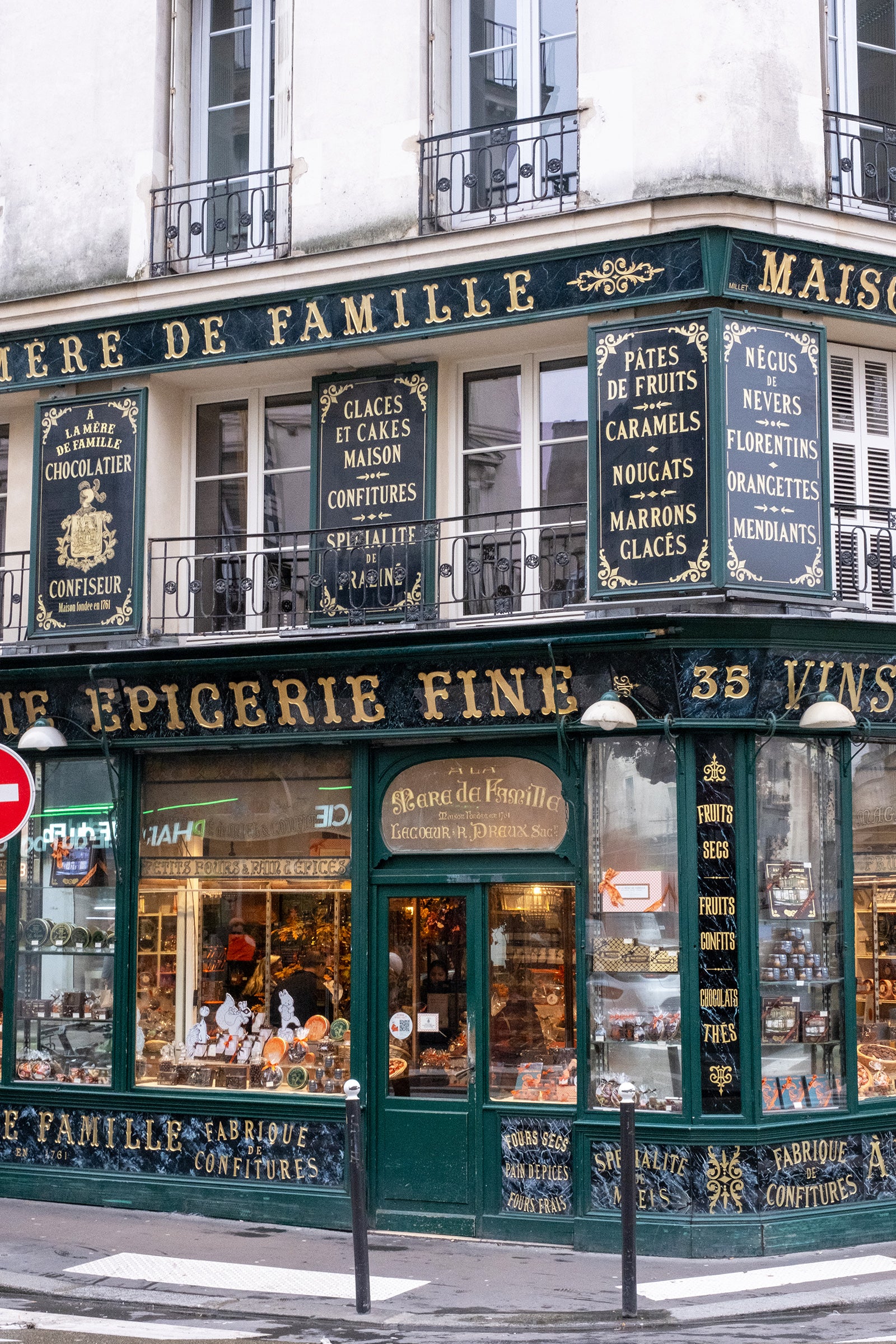 Outside the famous À La Mère de la Famille, the oldest chocolate shop in Paris. There are several locations in Paris, but this is the original and is worth stopping by while in the 9th arrondissement.