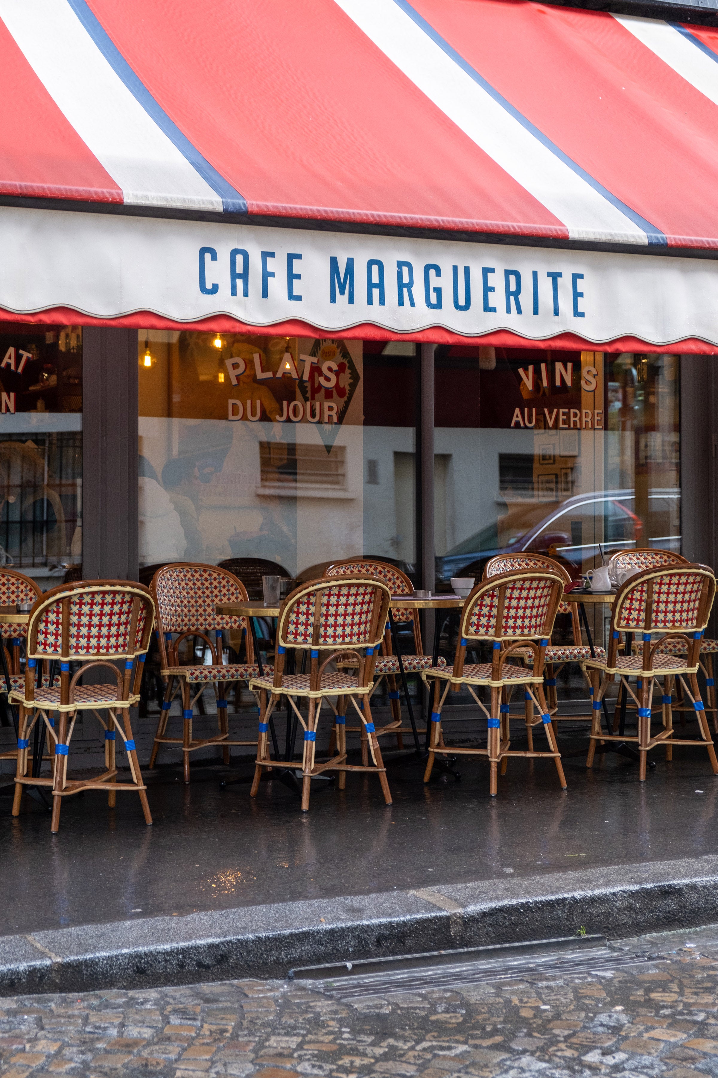 Paris was captured in the rain with the reflections in the window in Montmartre for Café Marguerite. I returned here just a few days later for a glass of wine in the sunshine and great people-watching.