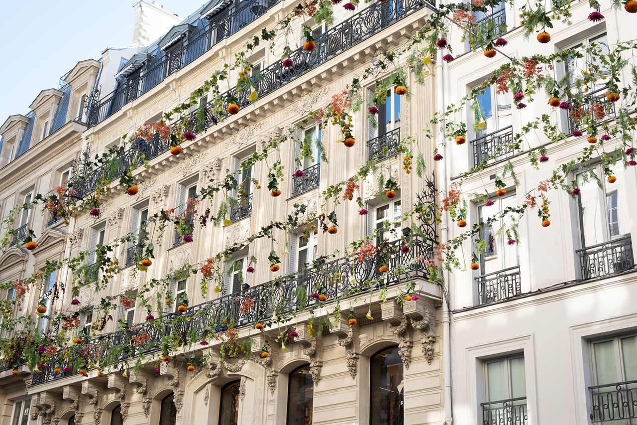 On a recent trip to Paris, I took a stroll down Rue Saint Honoré and was surprised and delighted to see this floral installation hanging above the street. I have walked down this street many times and this is the first time I have seen it.