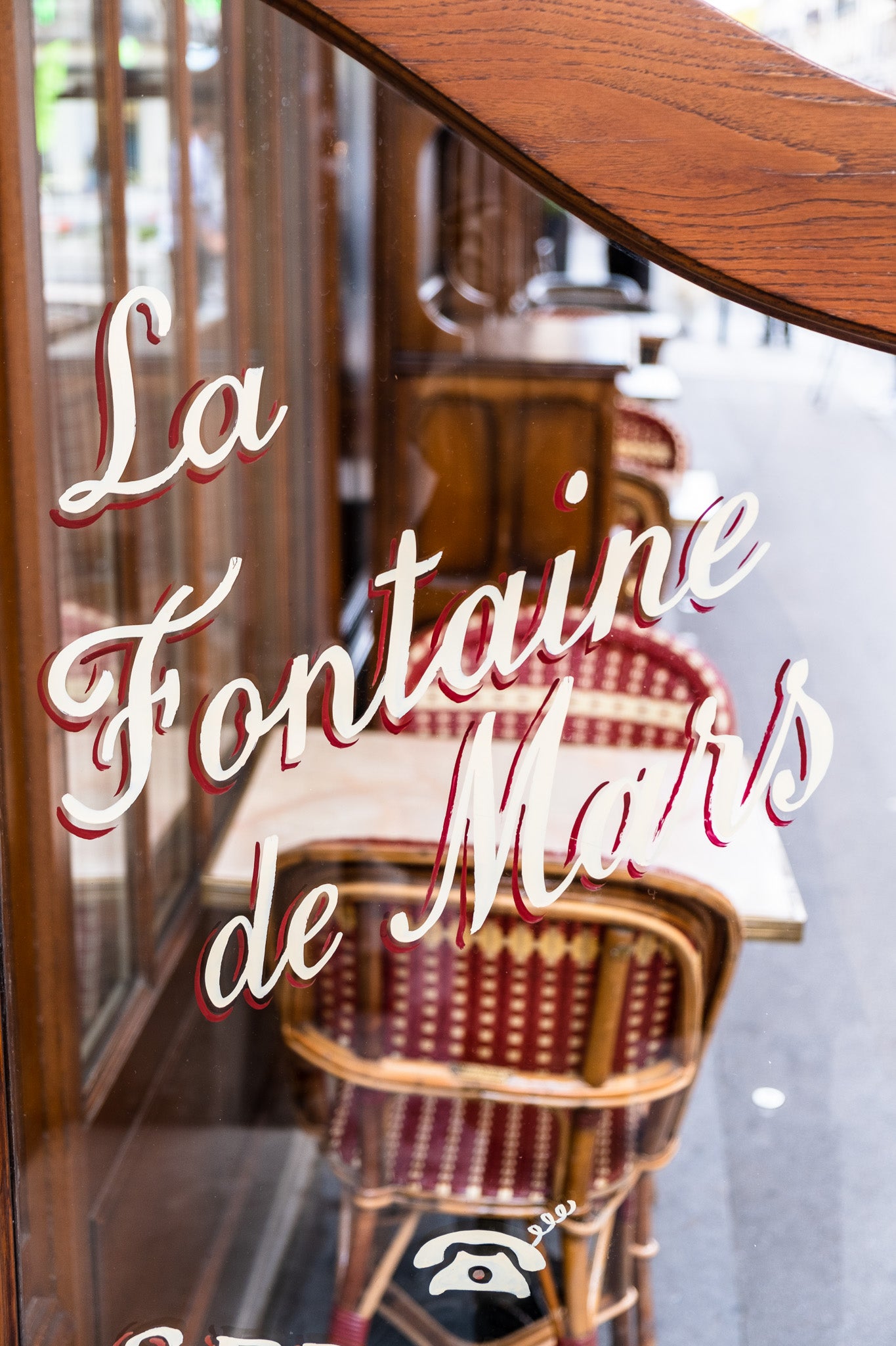 A Fontaine de Mars is a popular restaurant on the Left Bank on Rue Saint Dominique in Paris, France. Sit outside for great people-watching. The inside looks like a scene out of a movie. I have always had amazing meals here.