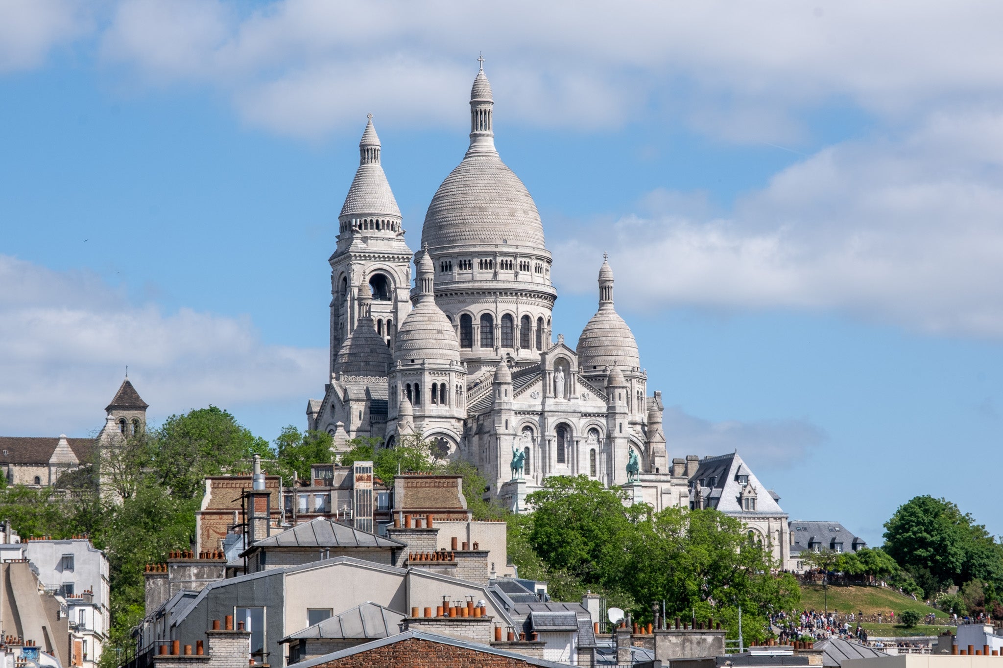 From the center of Paris, looking over the rooftops all the way to Montmartre and Sacre Coeur on a summer morning.