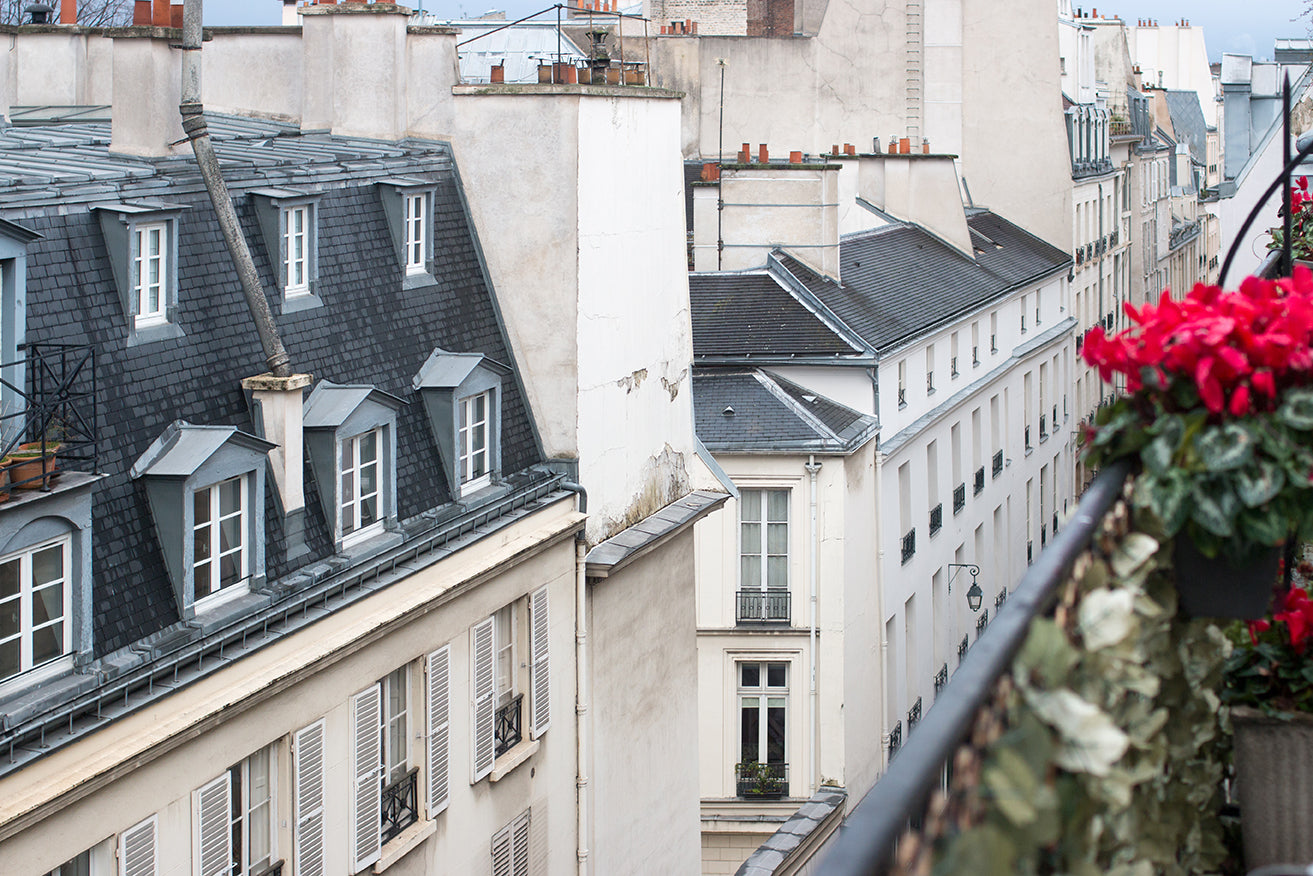A balcony view of Paris on the Left Bank.