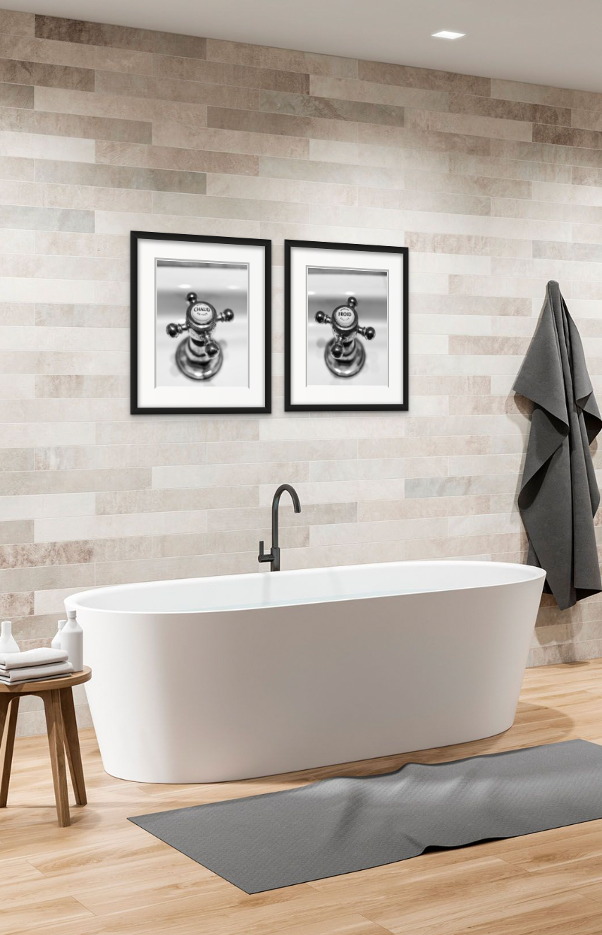 I found these bathroom fixtures in an old apartment on Ile St Louis. I immediately knew that would be perfect French bathroom art. Black and white "hot" and " cold" photographs set of 2.