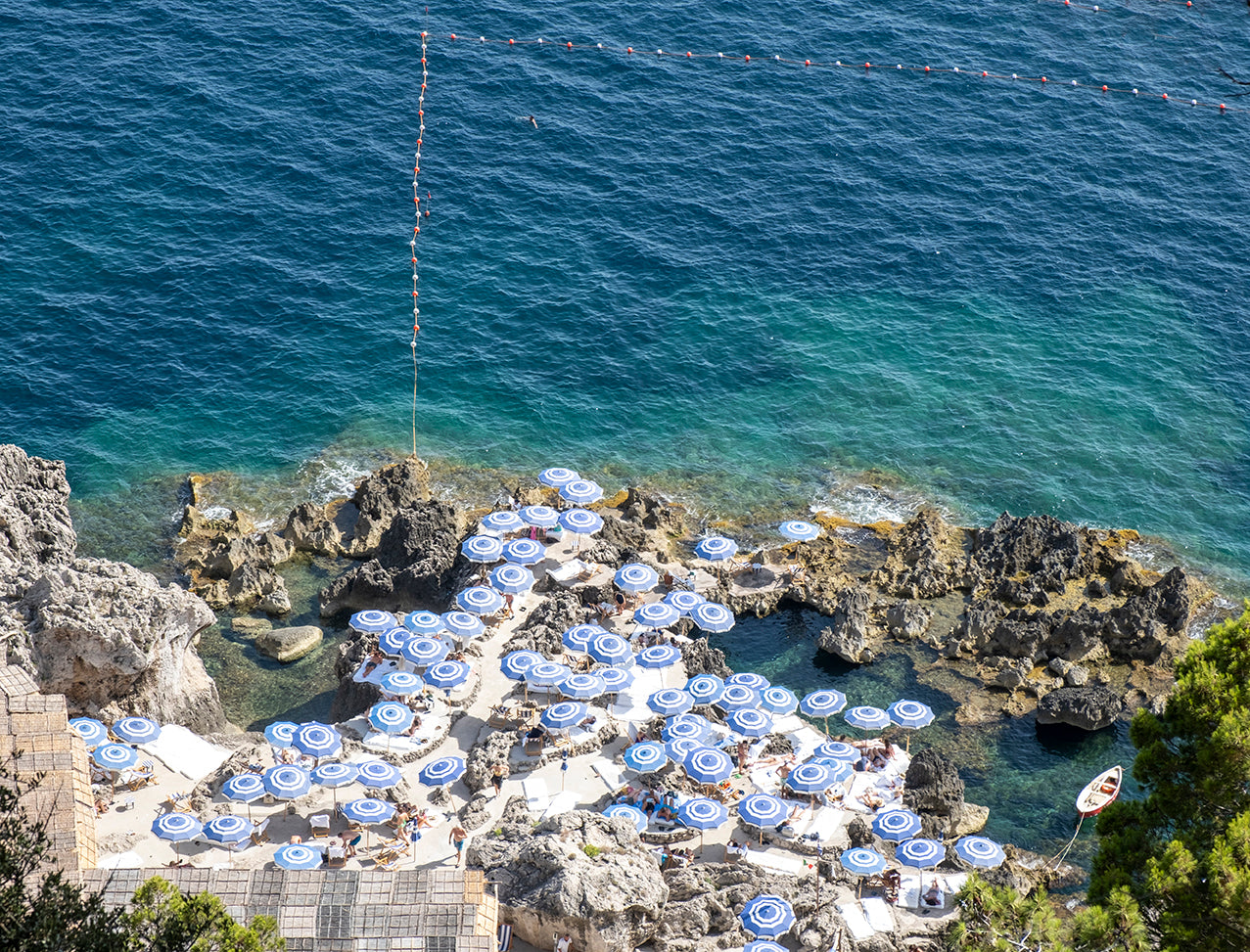 In Capri, don't miss out on the beautiful beaches. Take in the beach club filled with Italians and enjoy the summer sun. The magical and famous Fontelina beach club in Capri, Italy. When you make your plane reservation is when you book your days at Fontelina. It fills up fast for a good reason!