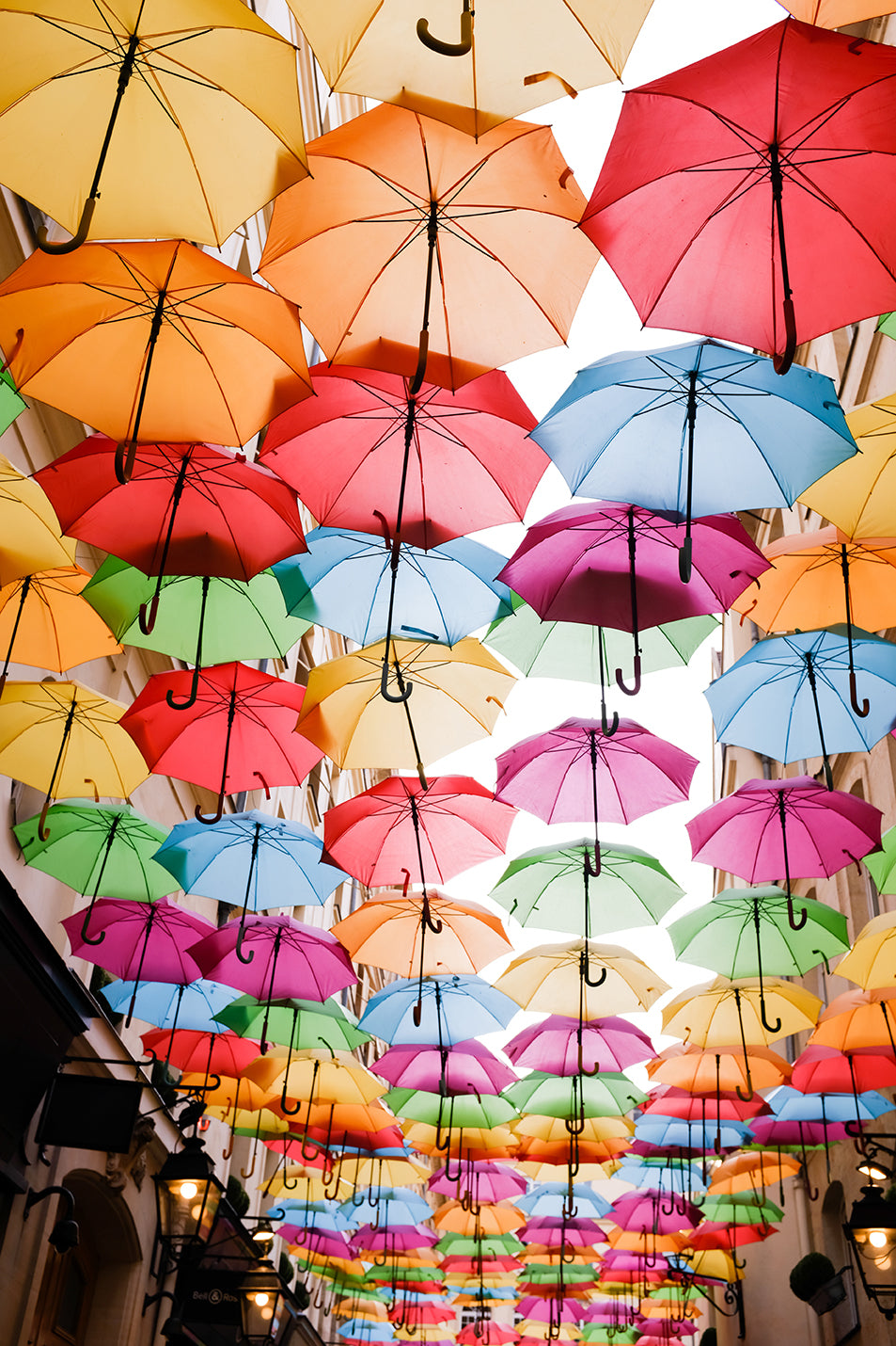 Discover the colored umbrellas in Paris, France. These were hanging as a limited edition exhibition.