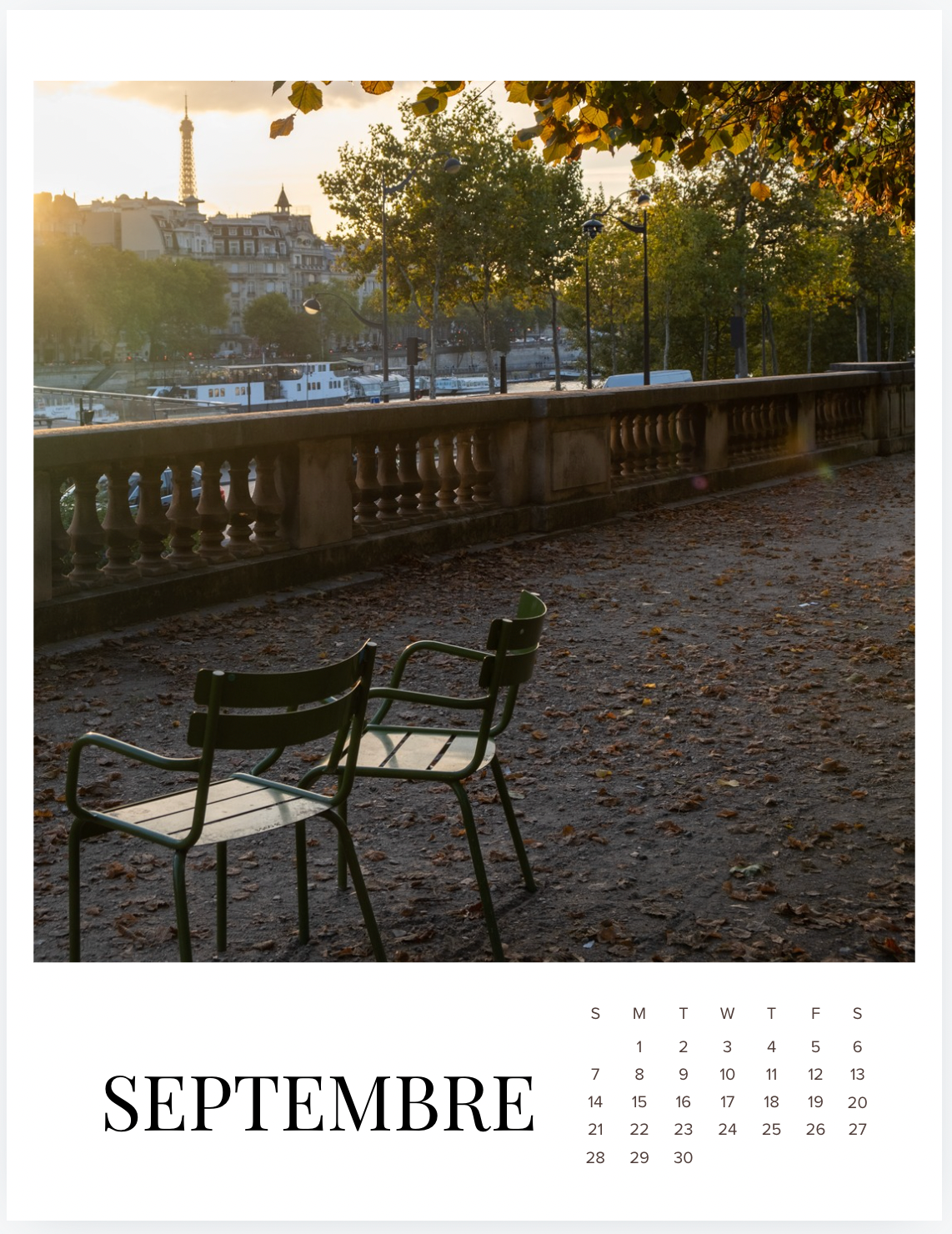 The "A Year in Paris" calendar takes you through the seasons in Paris, France, from the Tuileries Gardens to Paris at Christmas.