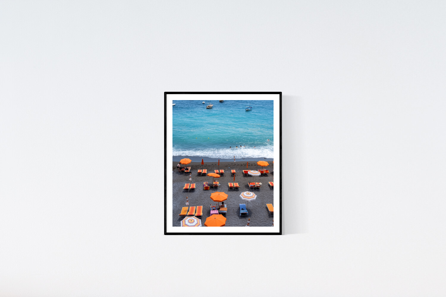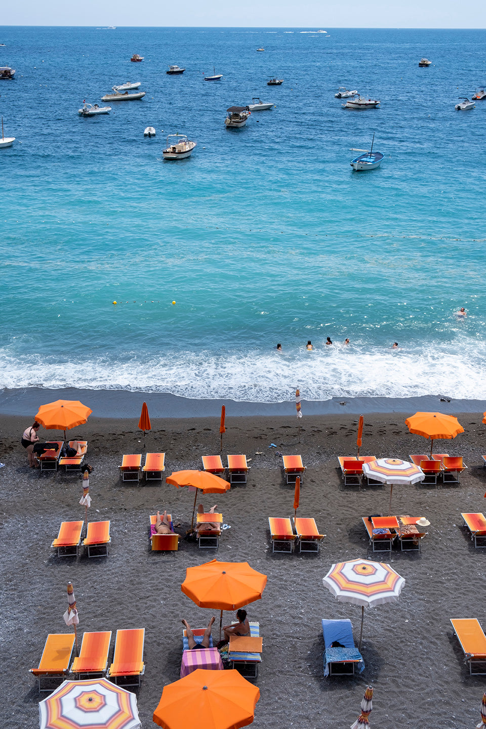 The beautiful coastline of Positano, Italy filled with beach umbrellas and sunbathers. From my Summer in Positano. I can't wait to get back for pasta and a spritz. Beautiful in person just as a postcard from Italy.