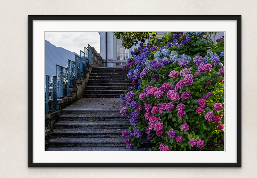I spent a summer holiday in Lake Como and we stayed for a week in Tremezzo. My family made several trips to the Grand Tremezzo Hotel for drinks, dinner, and a walk through the gardens. I loved the light hitting the hydrangeas in this photograph. It has the feeling of summer.